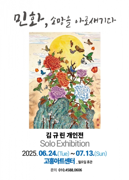 이번 전시는 고흥아트센터의 2025년 제2차 전시 대관 공모를 통해 선정된 두 팀 중 하나인 김규린 작가의 개인전으로 총 40여 점의 민화 작품이 전시된다.