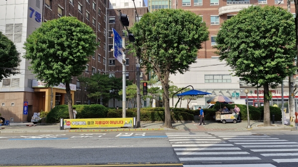 동구는 동부경찰서와 협의를 통해 유동 인구가 많은 6개 주요 횡단 보도와 교차로를 사업 대상지로 선정하고 총 1천만원의 예산을 투입해 보행 안전 저단형 현수막 지정 게시대를 설치했다.