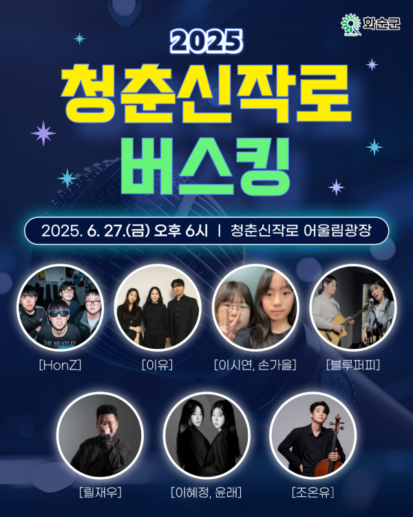 청춘신작로 버스킹은 오는 10월까지 개최되며 화순군은 청춘신작로 일대를 일상 속 문화공간이자 세대를 잇는 열린 무대로 만들어갈 계획이다.