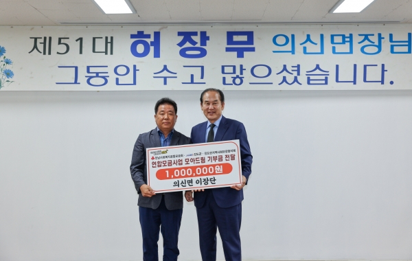 [남도저널] 봉현구 기자 =진도군은 지난 6월 25일에 의신면 이장단이 진도군 관내의 위기가구를 발굴하고 지원하기 위한 연합모금 사업인 ‘모아드림’에 기부금 100만원을 기탁 했다고 밝혔다.