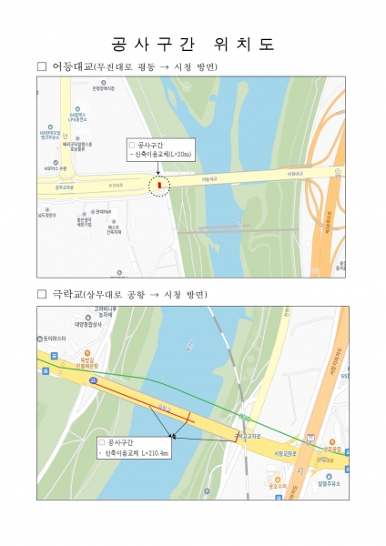 이번 공사는 교량의 구조 안정성과 통행 안전을 확보하기 위해 추진하는 것으로 앞서 중차량 통행에 따른 반복 하중으로 신축이음장치 기능이 저하됨에 따라 소음·진동과 구조물 손상 등이 우려된 바 있다.