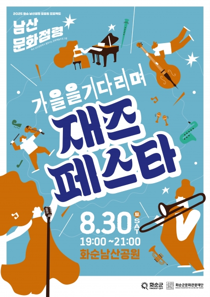 [남도저널] 김용범 기자 =화순군문화관광재단은 8월 30일 오후 7시~ 9시까지 화순 남산공원 야외무대에서 ‘가을을 기다리며 재즈 페스타’를 개최한다고 밝혔다.