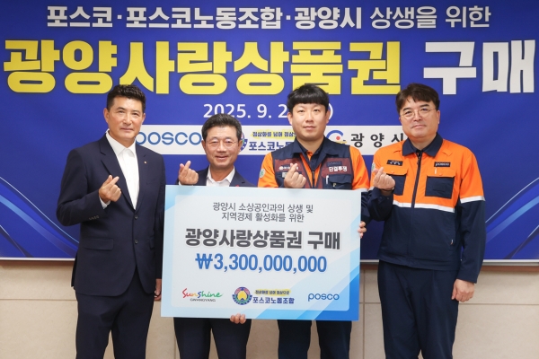 한편 포스코와 포스코노동조합은 올해 총 86억원 규모의 광양사랑상품권을 구매하며 지역경제 활성화와 지역사회 상생에 기여하고 있다.