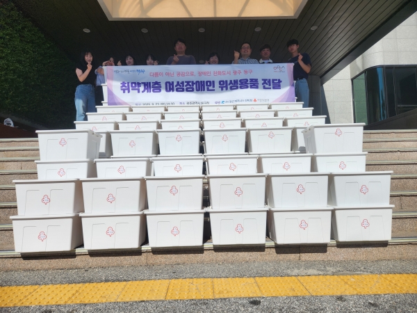 [남도저널] 광주 동구는 최근 경제·신체적 제약으로 어려움을 겪는 관내 여성장애인에게 여성 위생용품 98박스를 전달했다고 밝혔다.