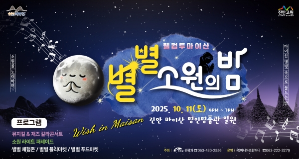 진안군 관계자는 “마이산의 가을 풍경이 가장 아름다운 시간대에 음악과 빛, 소망이 어우러지는 특별한 저녁을 준비했다”며 “많은 분들이 편안한 복장으로 찾아와 함께 걷고 서로의 소원을 응원하는 시간이 되길 바란다”고 말했다.