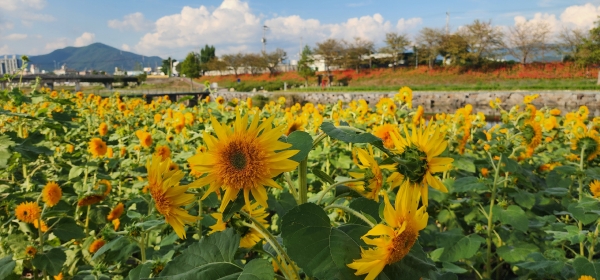 [남도저널] 김영도 기자 =광양시가 백운산에서 발원한 서천변에 테디베어 해바라기, 꽃무릇, 코스모스 등이 꽃물결을 이루며 가을 정취를 한껏 물들이고 있다고 밝혔다.