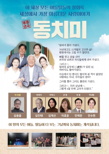 [남도저널] 김영도 기자 =광양시는 오는 11월 14일 저녁 7시 30분 광양문화예술회관 대공연장에서 대한민국 국민 명품연극 ‘동치미’를 무대에 올린다고 밝혔다.