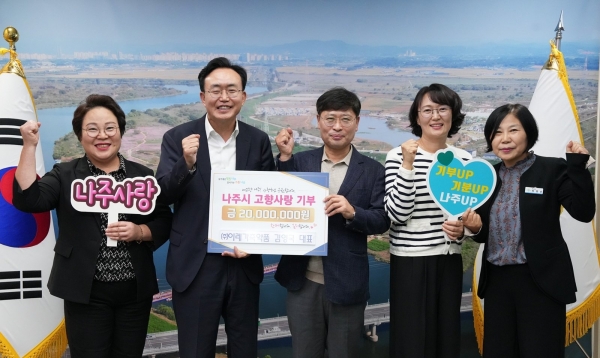 윤병태 시장은 “지역과의 상생발전에 대한 남다른 관심으로 나주시 고향사랑기부제에 매년 참여해 주신 따뜻한 마음과 큰 뜻에 깊이 감사드린다” 고 말했다. 고향사랑기부제는 개인이 거주하는 지자체를 제외한 다른 지자체에 연간 2천만원까지 기부할 수 있는 제도다. 기부 금액의 30% 상당의 답례품을 제공받고 10만원 까지는 전액, 초과분에 대해서는 16.5% 세액공제 혜택이 있어 많은 직장인이 합리적인 세테크 수단으로 활용을 하고 있다.