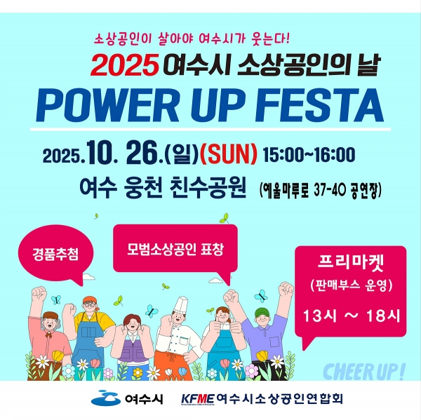 [남도저널] 김영도 기자 =여수시는 오는 10월 26일 오후 1시부터 웅천친수공원 일원에서 ‘2025 여수시 소상공인의 날 힘업 축제’를 개최한다.