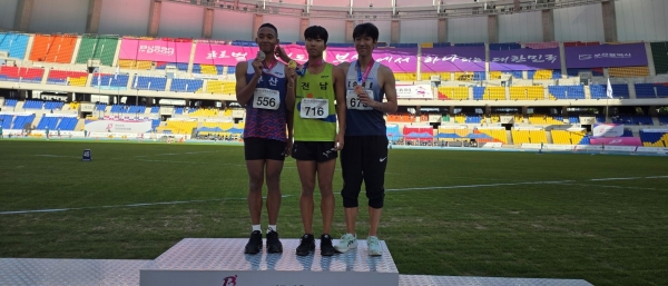 육상팀의 조상현 선수는 남자 400m 허들 종목에서 금메달을 획득하며 전국 정상에 올랐다.