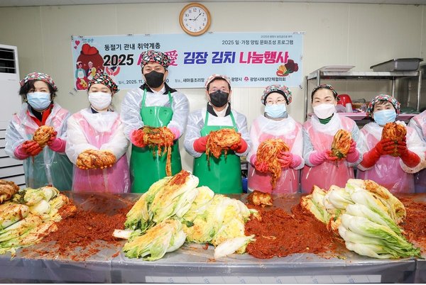 [남도저널] 김영도 기자 =광양시여성단체협의회가 지난 11월 21일, ‘2025년 사랑 愛 김장김치 나눔행사’를 열어 지역사회에 훈훈한 감동을 전했다.