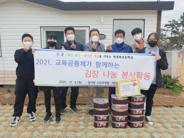 10년 째 이어지고 있는 김장 담그기 체험은 현경북초의 특색있는 프로그램 중 하나로 학생, 학부모, 교직원이 직접 김장을 담가 인근 지역민들에게 전달하는 봉사활동이다.