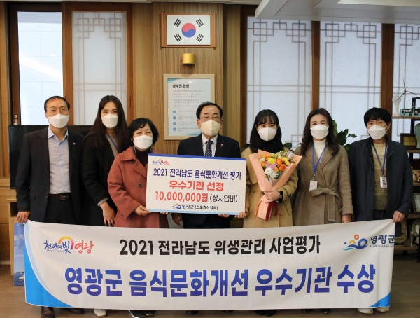 [남도저널] 영광군은 지난 29일 2021년 전라남도 음식문화개선사업 평가에서 2년 연속 우수기관으로 선정돼 음식문화개선 사업비 1,000만원을 확보했다고 밝혔다.
