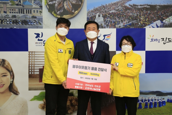 [남도저널] 한국나눔연맹이 소외된 이웃을 위해 진도군에 3,000만원 상당의 사랑의 쌀 500가마를 기탁했다.