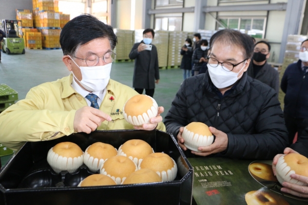 강 시장은 “명품 과일 나주배 명성 유지를 위해 추운 날씨 속에도 연일 고품질과 선별에 구슬땀을 흘리는 관계자 분들의 노고에 감사드린다”며 “설 연휴 전 저품위과 전량 매취에 따른 시장격리로 고품질 나주배가 명절 소비자의 식탁에 오를 수 있도록 최선을 다하겠다”고 말했다.