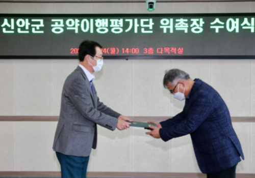 [남도저널 김용범 기자] 신안군은 1. 24.에 민선7기 신안군수 공약이행평가단 위촉식과 공약사항 이행평가 회의를 개최했다.