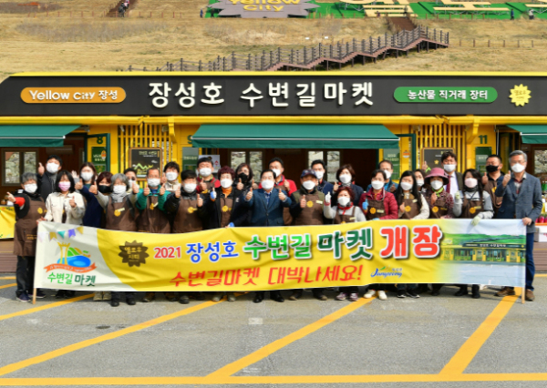 ‘장성호 수변길마켓’은 장성군이 운영 중인 대표적인 농산물 직거래장터로 총 9개동이 운영되고 있다. 장성에서 생산되는 신선한 농‧특산물을 중간 유통과정 없이 저렴하게 판매하고 있어 소비자들의 만족도가 높다. 지난 한 해 코로나19 장기화 속에서도 총매출액 3억 1천 9백만원(전년대비 276%)을 기록했다.