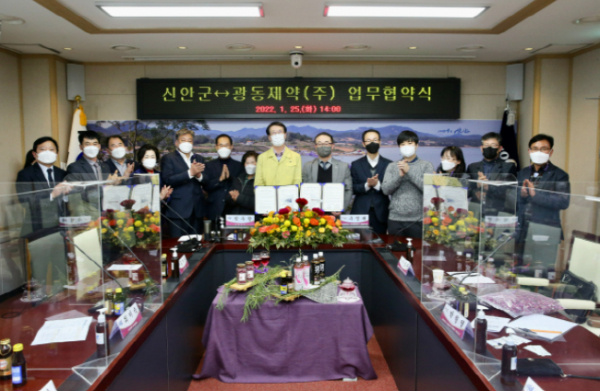 [남도저널 김용범 기자] 신안군이 25일 광동제약(주)과 손잡고 맨드라미 음료 개발을 위한 업무 협약(MOU)을 체결했다고 밝혔다.