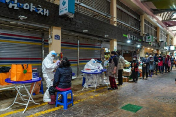 이어 김 시장은 임시 선별검사소가 설치된 실내체육관을 찾아 PCR 및 자가진단키트 검사 운영상황을 점검했다.