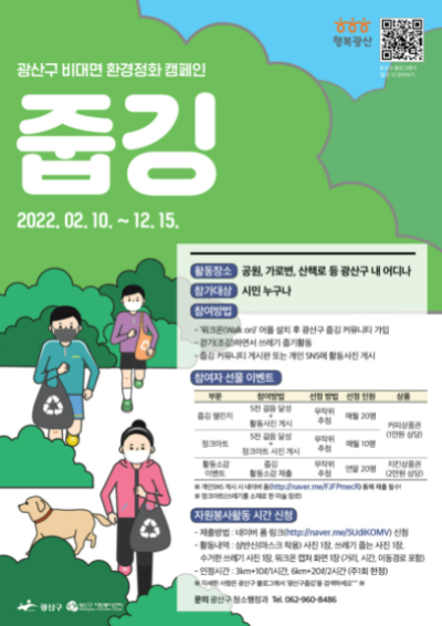 줍깅에 대한 자세한 안내는 광산구 청소행정과에 문의하면 된다.