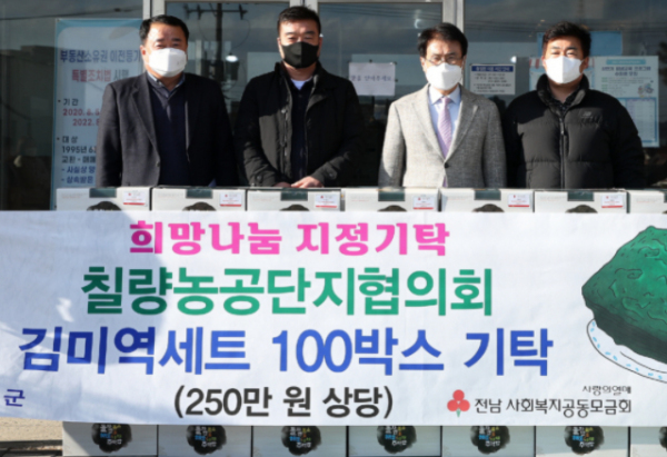 [남도저널 양용숙] 강진군은 지난 15일 정월대보름을 맞아 칠량농공단지협의회에서 취약계층에 전달해 달라며 250만 원 상당의 김·미역 100세트를 기탁해 따뜻한 이웃 사랑을 실천했다고 밝혔다.