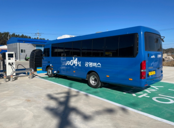 신안군에 따르면, 지난 '20. 9월 ‘친환경 전기버스 도입 추진계획’을 수립하고, 한국전력공사와 전기버스 충전소 구축 협약을 체결하여, 지난해 시범사업으로 전기 버스(카운티EV) 구입비 2억 원을 투입, 12월 비금∼도초 간 전기버스(공영) 운행 개시에 들어갔다.