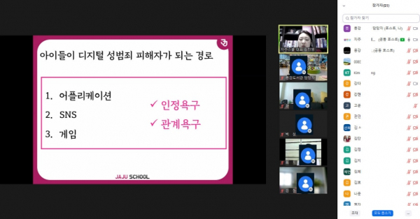 지역사회의 코로나19 상황을 고려해 비대면 프로그램(ZOOM)으로 운영한 가운데 67명의 학부모가 온라인을 통해 참여하는 등 부모들의 많은 관심을 받았다.