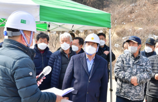 24일 현장을 방문한 유두석 장성군수는 “차질 없는 공사 진행과 안전 관리를 위한 지원을 아끼지 않겠다”고 말했다.
