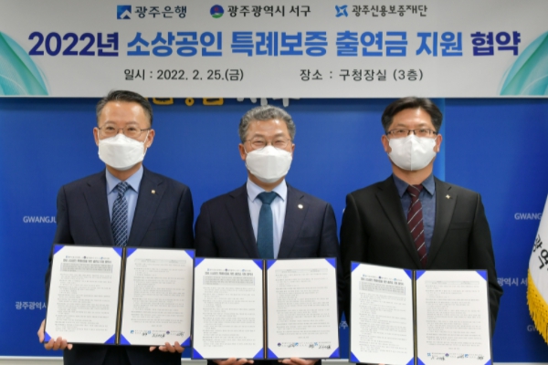 [남도저널 김용범 기자] 광주 서구가 코로나19 장기화로 어려움을 겪고 있는 지역 소상공인을 위해 지난 25일 ‘광주 서구 소상공인 특례보증 업무협약’을 체결했다고 밝혔다.