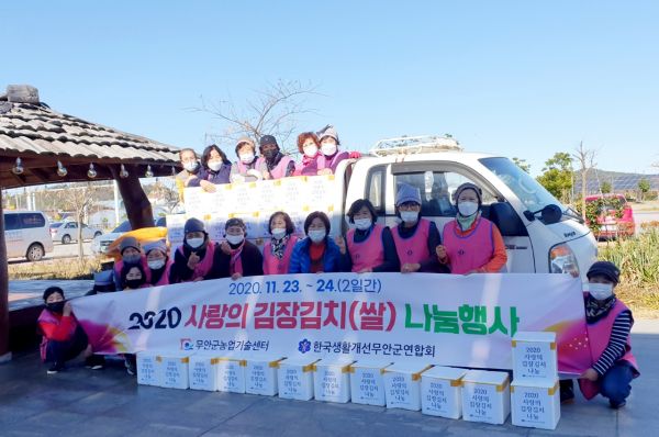 [남도저널] 김용범 기자 = 무안군은 여성농업인 학습단체인 한국생활개선무안군연합회에서 지난 24일 사랑의 김장김치와 쌀 나눔 행사를 가졌다고 밝혔다.