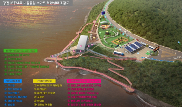 이승옥 군수는 “강진만의 푸른바다와 해안 절경의 고품격 경관으로 유명한 분홍나루 일원에 명품쉼터가 조성되면 지역자원 홍보 등 체류형 관광 거점시설로서 역할을 충분히 수행할 수 있을 것으로 기대된다”고 말했다.