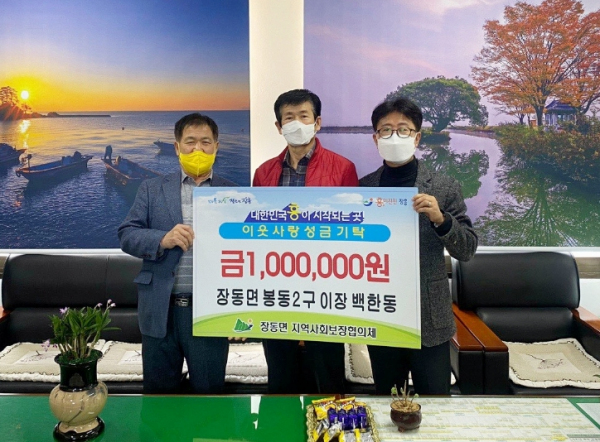 장동면 지역사회보장협의체 이성흠 공동위원장은 “복지사각지대 해소와 소외계층의 복지향상을 위해 기부하신 분들의 소중한 마음을 잘 전달하고, 앞으로도 기부문화를 확산시켜 지역공동체 의식 함양에 최선을 다하겠다”고 밝혔다.