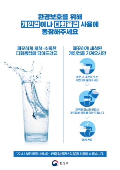 코로나19로 한시적 허용됐던 카페 등 식품접객업 매장 내 플라스틱 컵, 접시·용기 등 1회용품의 사용이 4월 1일부터 다시 금지된다.