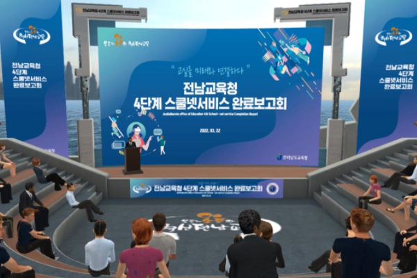 [남도저널 김용범 기자] 전남교육청이 ‘4단계 스쿨넷서비스 구축’을 완료하고 22일(화) 메타버스(확장가상세계)를 이용해 보고회를 개최했다.