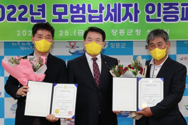 올해의 모범납세자는 장흥바이오식품산업단지에 위치한 주식회사 현대푸드(장흥지점)와 장흥읍 이종재 씨가 선정됐다.