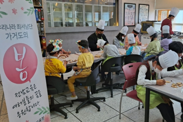 가거도초 학생 8명과 유치원 원아 3명, 흑산중학교가거도분교장 학생 7명은 이날 하루 동안 전남교육청이 제공한 장비와 재료를 이용해 피자·쿠키·케익을 직접 만들어 시식하며 즐거운 한때를 보냈다.