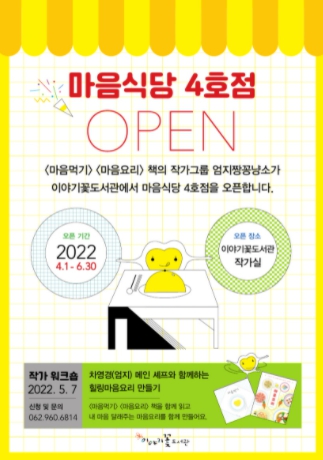 ‘마음식당 4호점’을 주제로 한 이번 전시는 이야기꽃도서관 3층 그림책특화공간 내 작가실에서 진행된다.