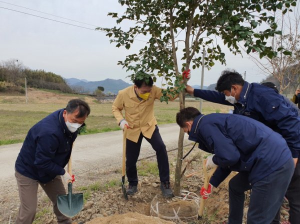 이날 식목행사는 군수, 군의원, 실과소장, 산림조합, 임업후계자 등 50여 명이 참여해 군목인 동백나무를 식재했다.