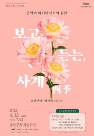 다양한 분야의 청년들로 구성된 전문예술단체 펠리체가 12일 광산문화예술회관에서 음악과 미디어아트를 융합한 ‘보고, 듣는 사계(四季)’로 올해 첫 무대를 장식한다.