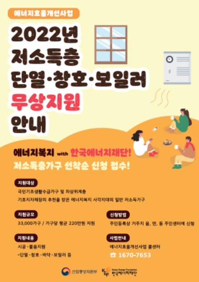 에너지 취약계층 가구를 대상으로 단열·창호·바닥시공, 보일러 교체 및 선풍기 지원 등 에너지 사용 환경 개선과 비용 절감을 지원하는 에너지복지사업의 일환이다.