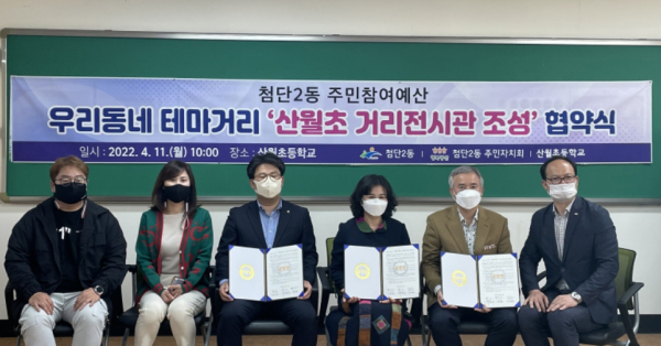 첨단2동은 11일 산월초등학교, 첨단2동 주민자치회와 우리동네 테마거리 ‘거리전시관 조성’ 사업의 성공적 추진을 위한 업무 협약을 체결했다.