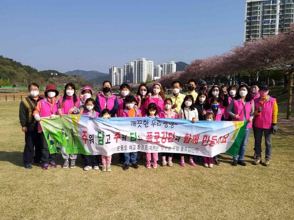 이번 행사에는 주담주담 사회단체 회원과 광양읍사무소 직원 30여 명이 참석해 2개 구간으로 나눠 플로깅 활동과 함께 공원 일대 쓰레기를 수거했다.