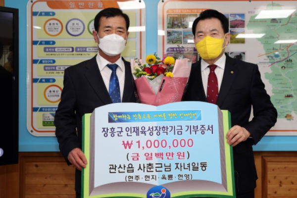 이날 자녀들을 대신해 기부행사에 참가한 사춘근 씨는 “받은 만큼 돌려 주는 것이 도리”라며 “앞으로도 장흥군 인재육성 지원에 힘을 보태고 싶다”고 전했다.