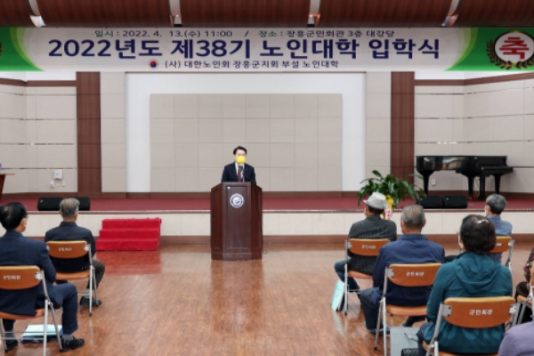 (사)대한노인회 장흥군지회 부설 노인대학은 1982년 노인갱년대학을 시작으로 올해로 제38기 입학생을 맞이했다.
