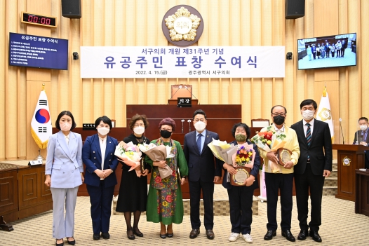 [남도저널 김용범 기자] 광주 서구의회는 15일 서구의회 2층 본회의장에서 서대석 서구청장, 서구의원, 주민 등 50여 명이 참석한 가운데 과거 지방자치의 역사를 회고하며 개원 31주년을 축하했다. 또한 지역사회 및 의정 발전에 공헌한 유공자 18명에게 표창패를 수여했다.