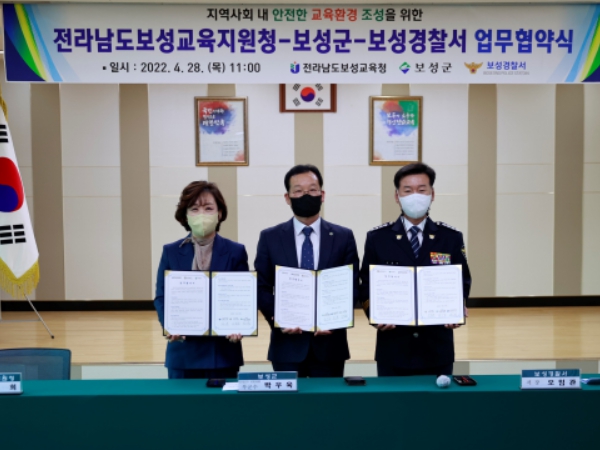 [남도저널 서인호 기자] 보성군과 보성교육지원청, 보성경찰서는 지난 28일 보성교육지원청에서 안전한 교육 환경 조성을 위한 업무협약을 체결했다.