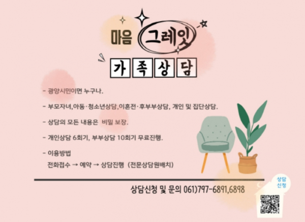 앞으로도 광양시 가족센터는 가족상담 사업을 통해 광양시민이 가족의 기능을 회복하고 위기를 예방하며, 건강한 가족문화를 만들도록 꾸준히 지원할 예정이다.