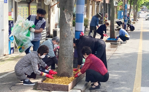 주민들은 가로수 주변에 친환경 소재 칼라우드칩을 도포해 영산포 풍물시장 진입로를 걷고 싶은 가로수길로 탈바꿈시켰다.