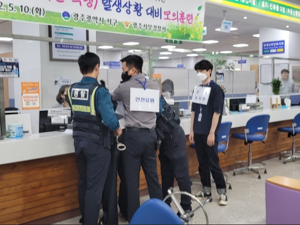 [남도저널 김용범 기자] 광주 서구가 지난 10일 서구청 민원실에서 민원담당 공무원에 대한 폭언과 폭행 등 민원을 가상한 특이민원 발생에 대비한 모의훈련을 실시했다고 밝혔다.