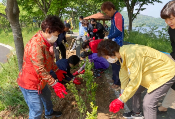 주민자치위원회와 황금사철나무 1400여주 식재